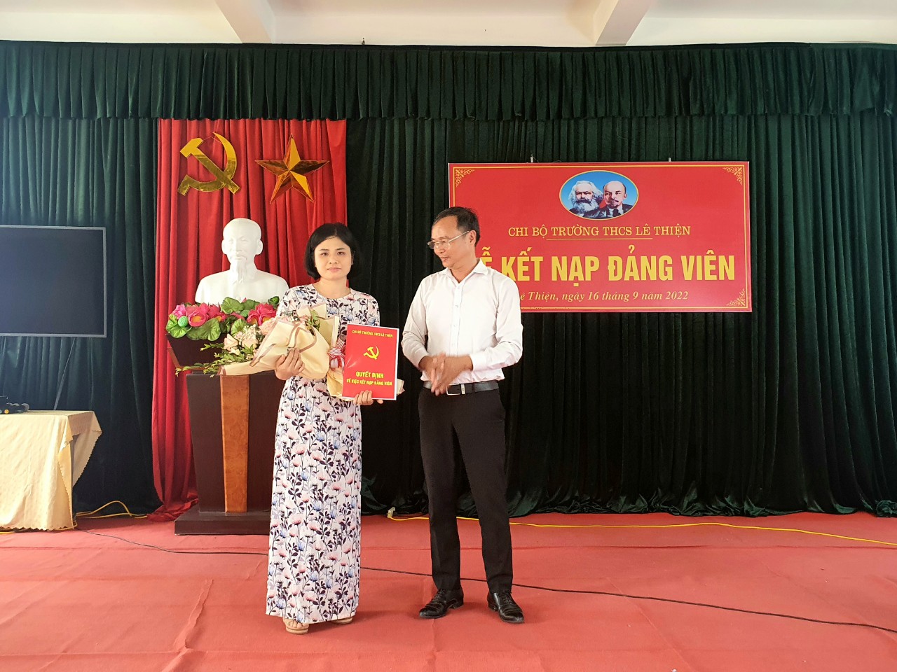 Sáng ngày 16 tháng 9 năm 2022, Chi bộ trườngTHCS Lê Thiện đã tổ chức kết nạp cho quần chúng ưu tú - cô giáo Lê Thị Liên.
