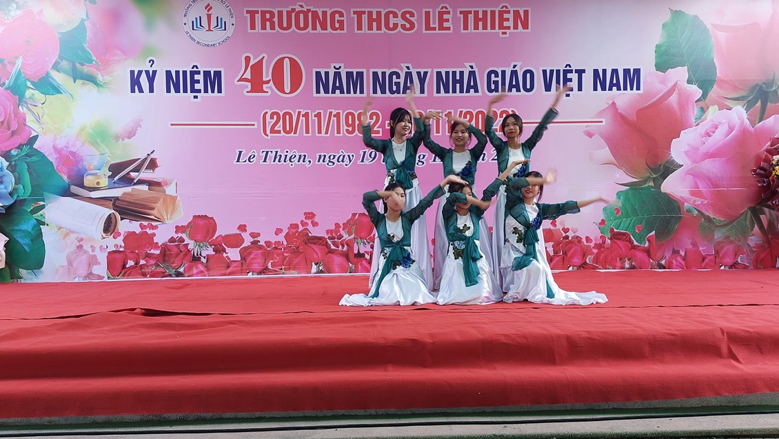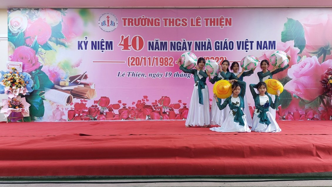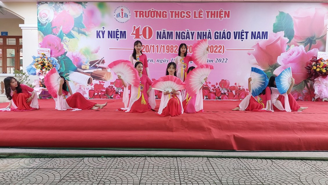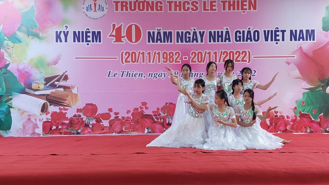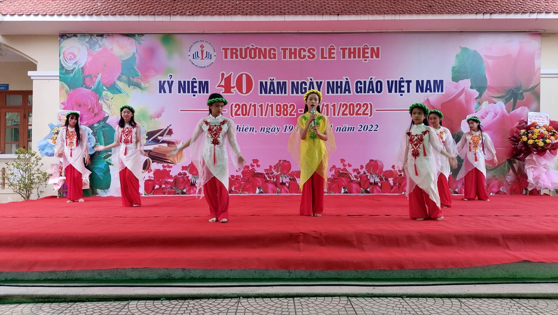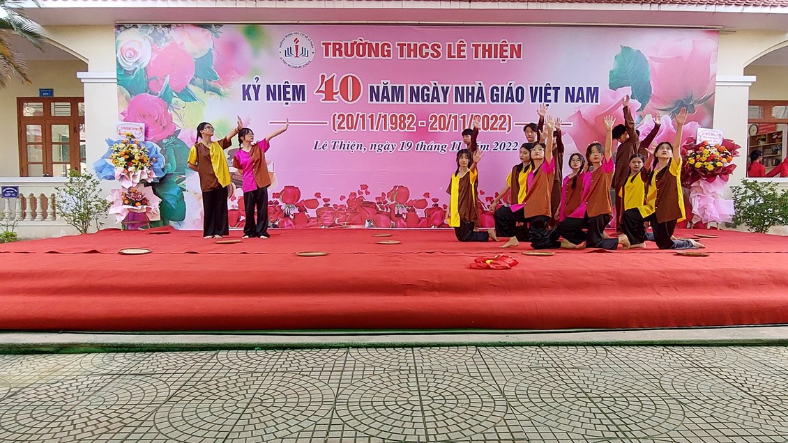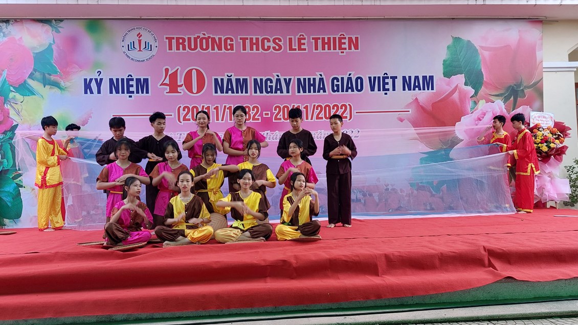 Trong không khí tưng bừng của cả nước, hôm nay, ngày 19/11/2022 tại sân trường THCS Lê Thiện đã diễn ra Hội diễn văn nghệ kỷ niệm 40 năm Ngày Nhà giáo Việt Nam (20/11/1982 – 20/11/2022) để tri ân công ơn của các thầy giáo, cô giáo trong sự nghiệp trồng người.
