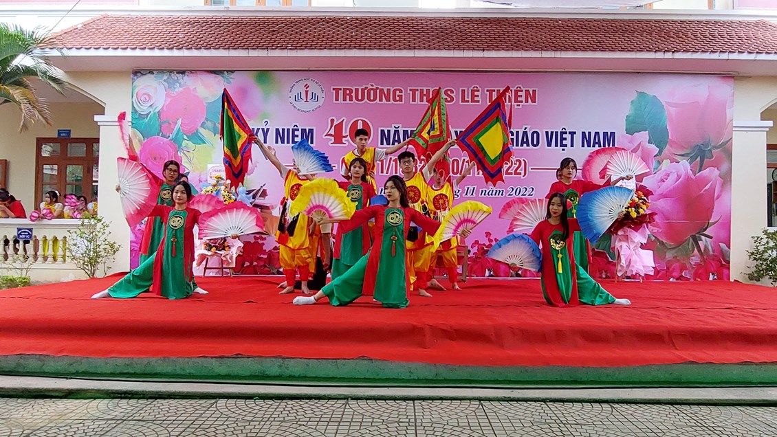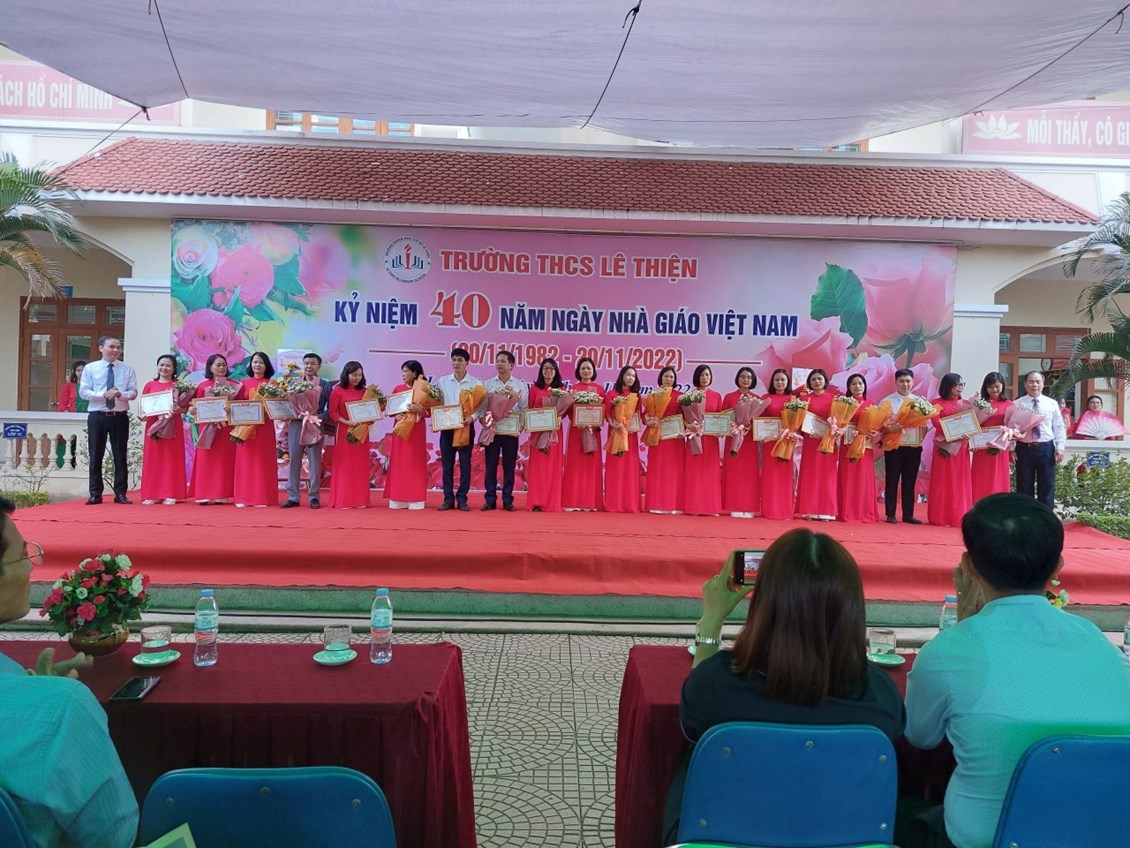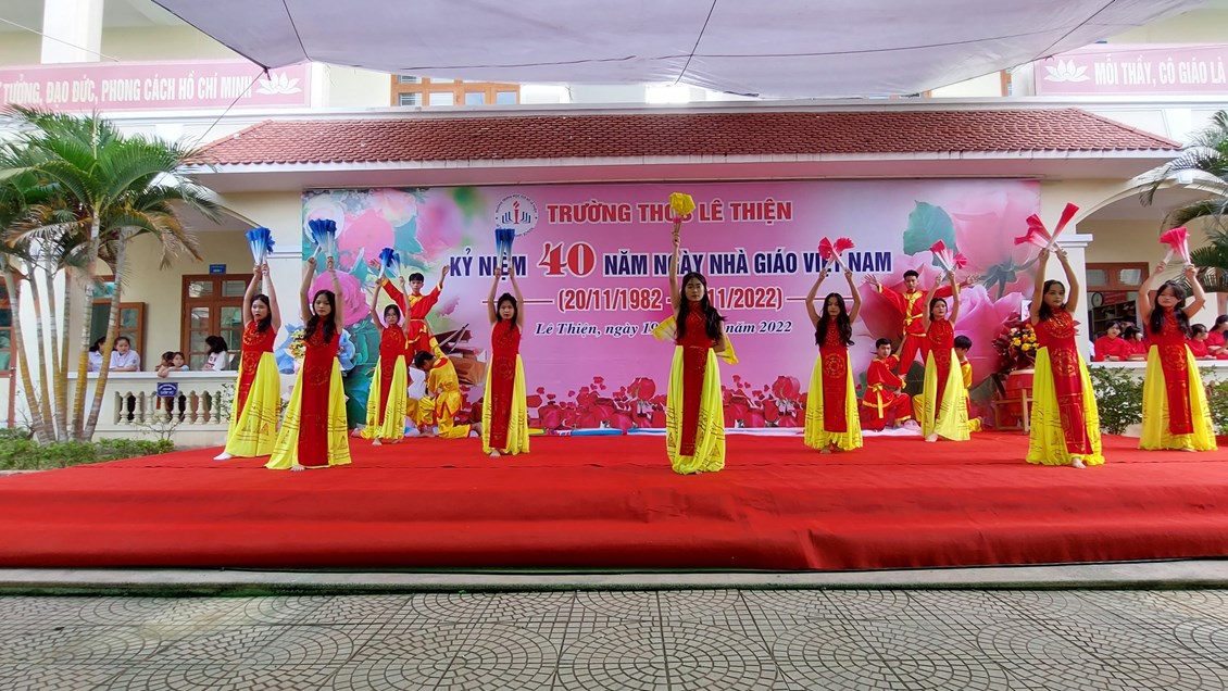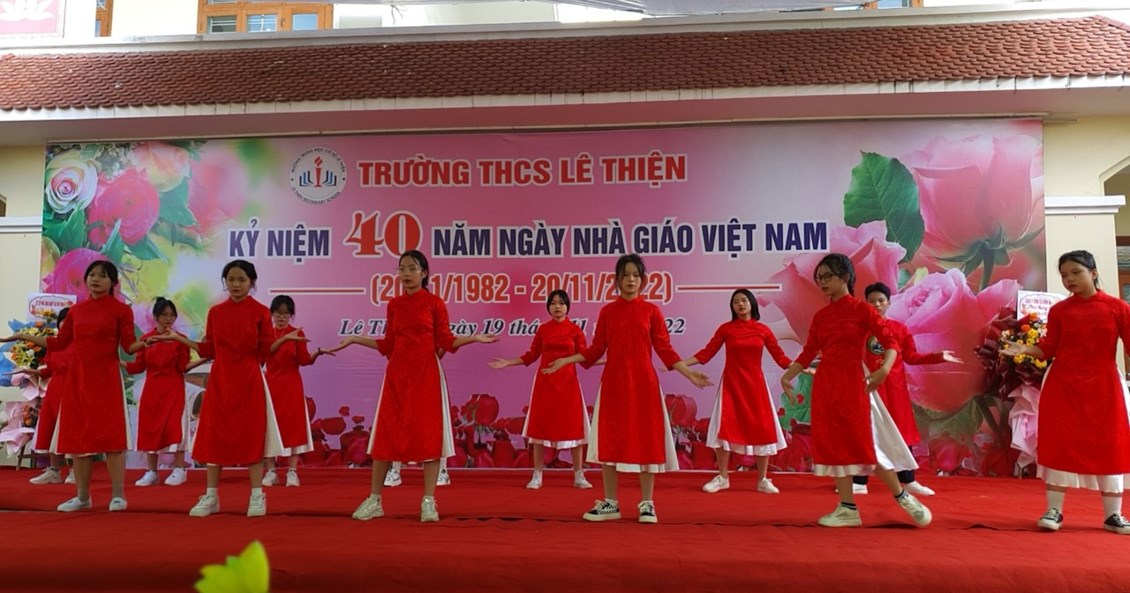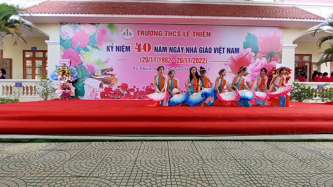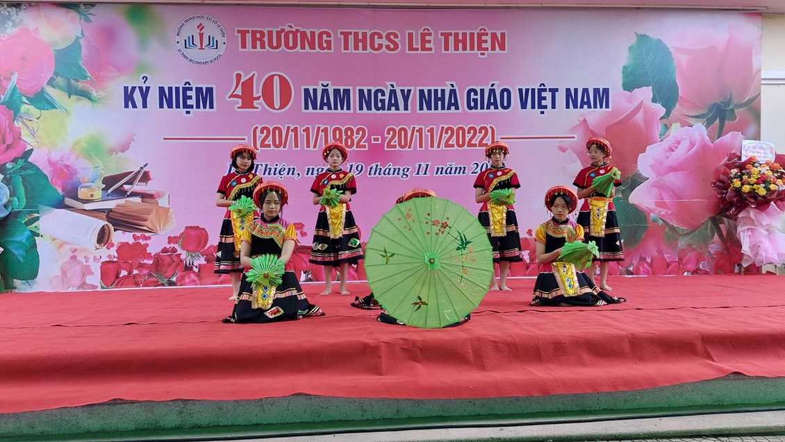 Trong không khí tưng bừng của cả nước, hôm nay, ngày 19/11/2022 tại sân trường THCS Lê Thiện đã diễn ra Hội diễn văn nghệ kỷ niệm 40 năm Ngày Nhà giáo Việt Nam (20/11/1982 – 20/11/2022) để tri ân công ơn của các thầy giáo, cô giáo trong sự nghiệp trồng người.