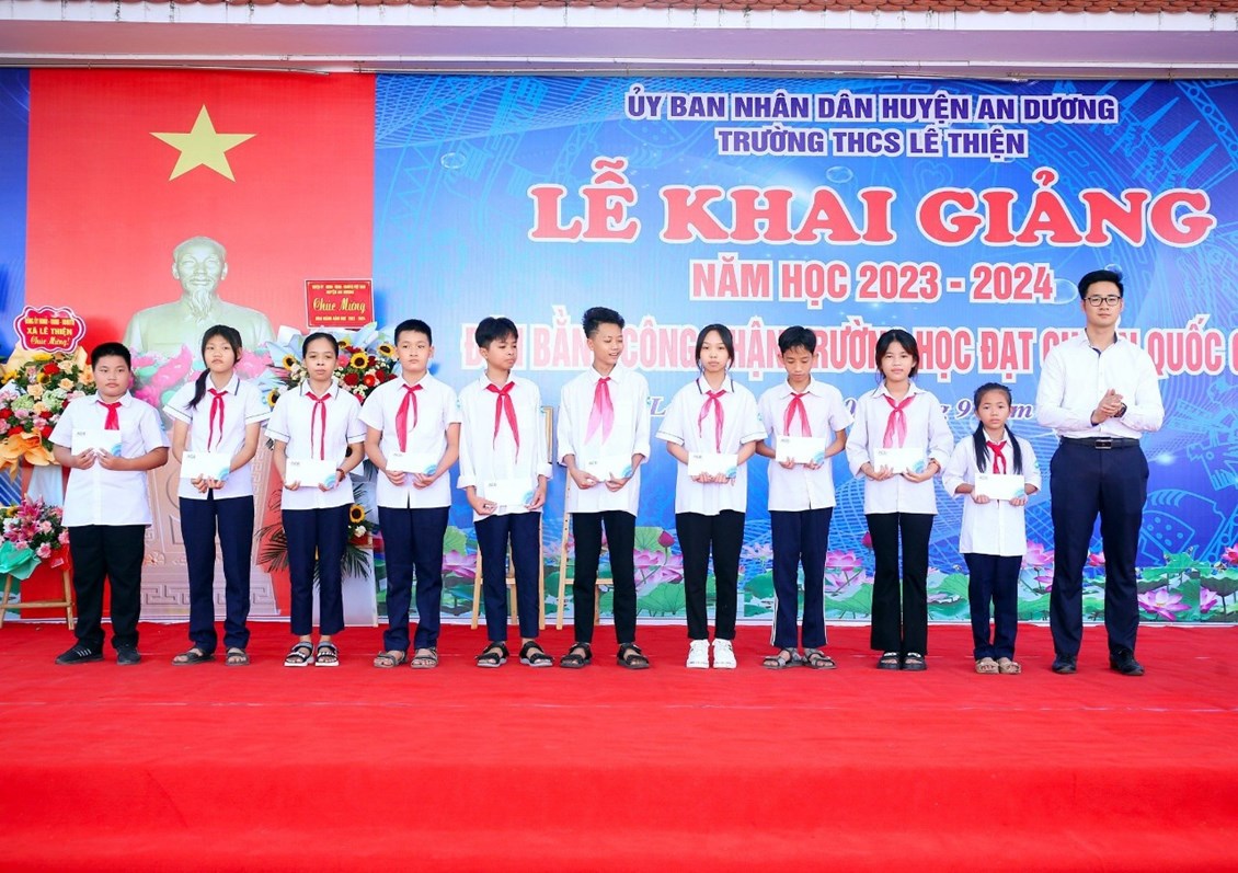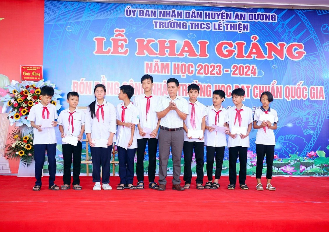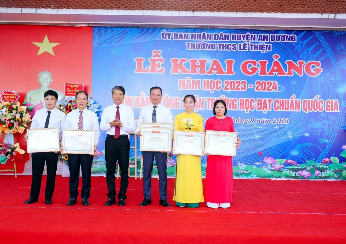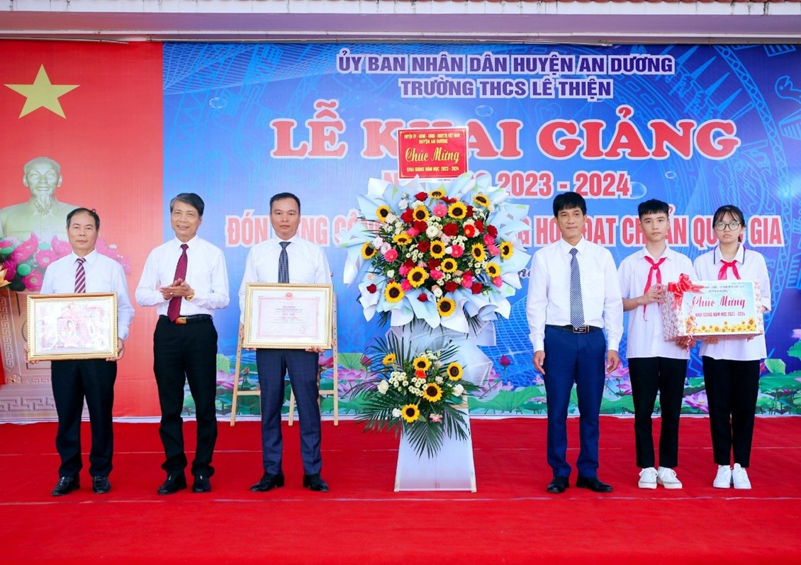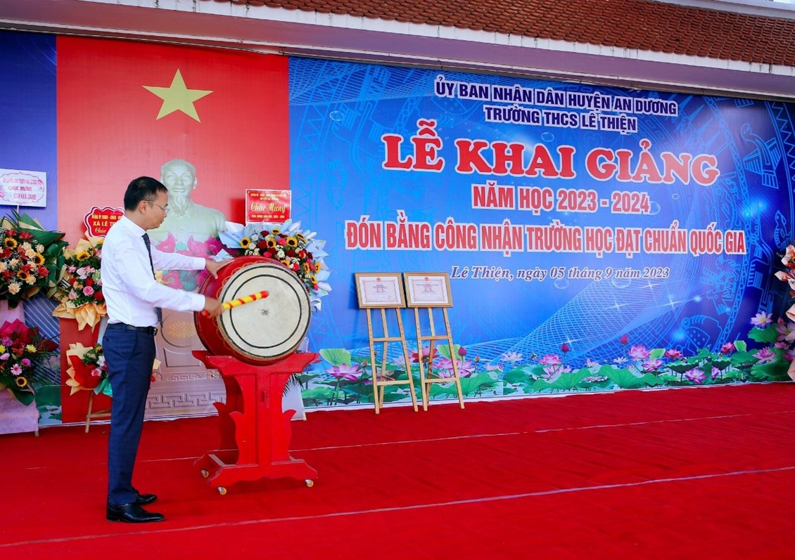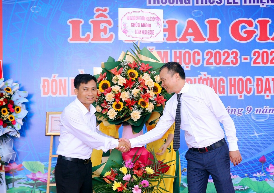 Sáng ngày 5/9/2023 hòa chung không khí cả nước nô nức đón chào năm học mới, trường THCS Lê Thiện long trọng tổ chức Lễ Khai giảng năm học 2023-2024. Đến dự buổi lễ, nhà trường rất vinh dự được đón tiếp ông Hoài Viết Thảo - Ủy viên Ban thường vụ, Phó Chủ tích hội đồng nhân dân huyện; Các đại biểu là lãnh đạo Ban tổ chức huyện ủy, Văn phòng HĐND - UBND huyện, Phòng GD&ĐT huyện; bà Nguyễn Thị Quyên - huyện ủy viên, Bí thư Đảng ủy xã; Cùng sự có mặt của tập thể hội đồng sư phạm nhà trường, các trung tâm, đối tác, các doanh nghiệp và đặc biệt là sự có mặt đông đủ của tất cả các em học sinh.